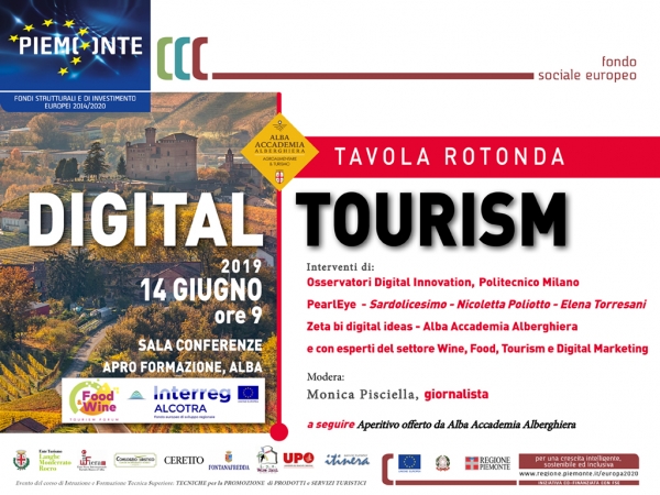 La Tavola Rotonda sul Digital Tourism è un evento realizzato in collaborazione con Comune di Alba, TuLangheRoero, Ente Fiera del Tartufo. Rientra inoltre fra le iniziative collaterali del corso di Istruzione e Formazione Tecnica Superiore TECNICHE per la PROMOZIONE di PRODOTTI e SERVIZI TURISTICI di Alba Accademia Alberghiera realizzato in partnership con: Ceretto, Consorzio Turistico Langhe Monferrato Roero, Fontanafredda, Università del Piemonte Orientale, IPS Velso Mucci, Itinera Servizi Turistici