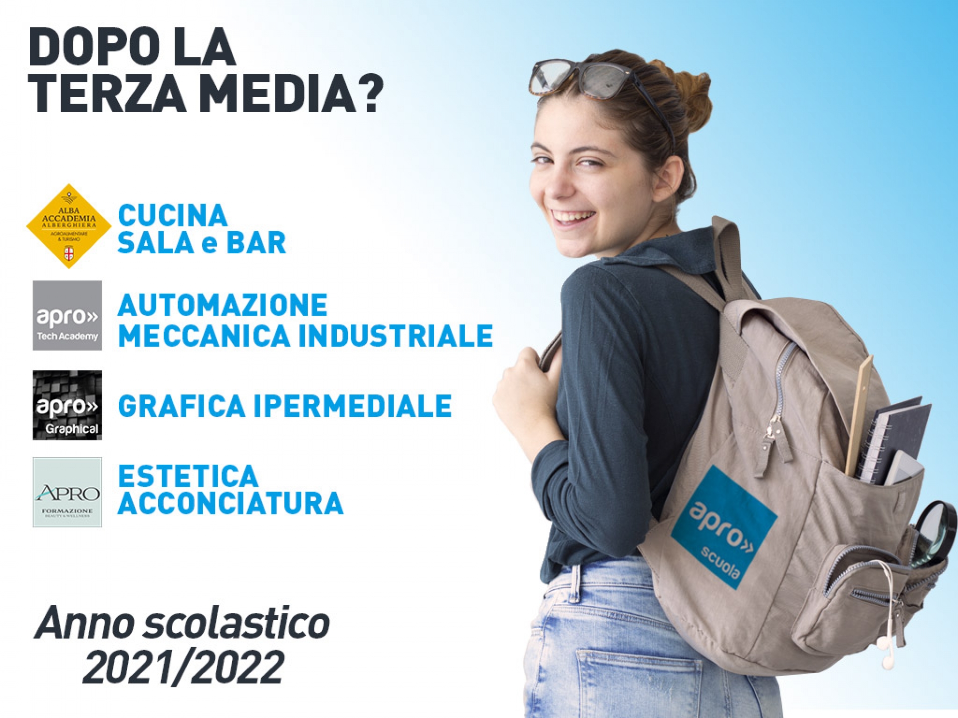 Per info, visita virtuale dei laboratori, recapiti e prenotazioni vai sul sito https://scuola.aproformazione.it/